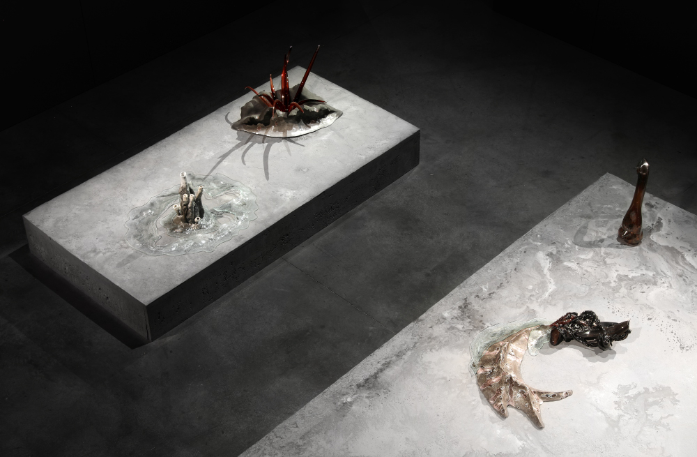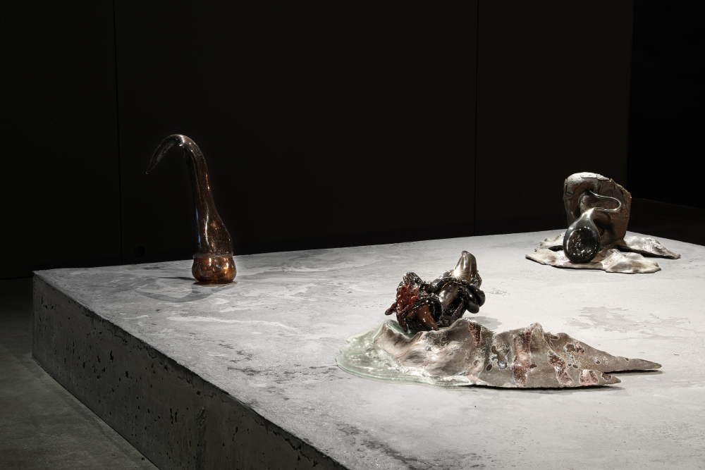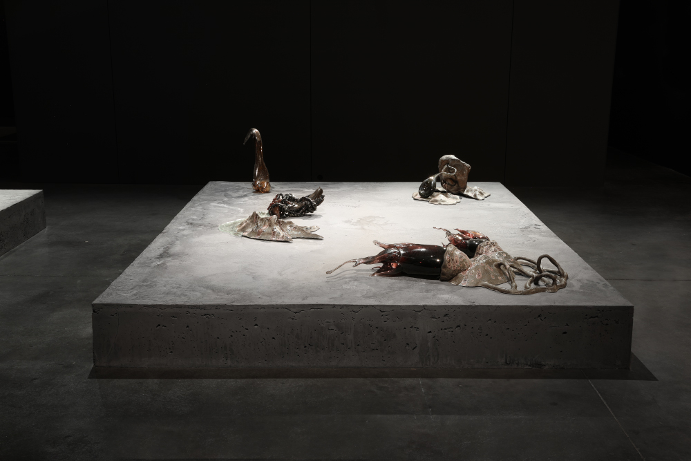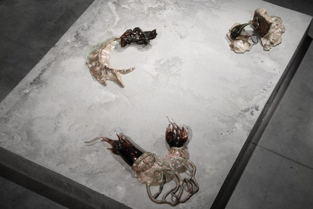 Grès et porcelaine émaillés, verre soufflé et thermoformé, béton teinté dans la masse, 10 x 9 x 0,50 m.
