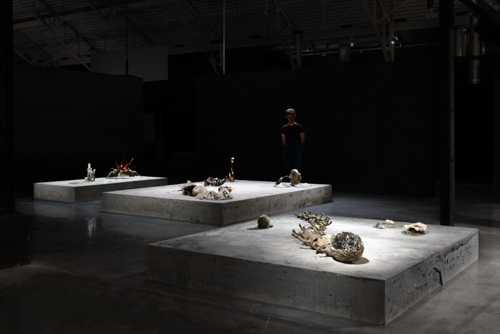 Le minéral à la fois comme origine et destinée de nos corps, qui se sont constitués de calcium, de phosphore, de potassium, de soufre, de sodium, de fer, de cuivre, de zinc, de sélénium, de manganèse, de cobalt, de silicium et qui, au terme d’un long processus de fossilisation, rejoindront la matrice géologique dont ils sont issus.