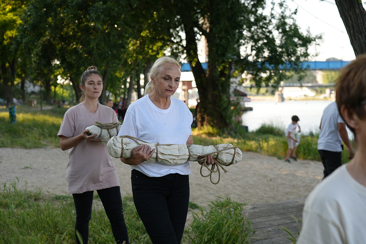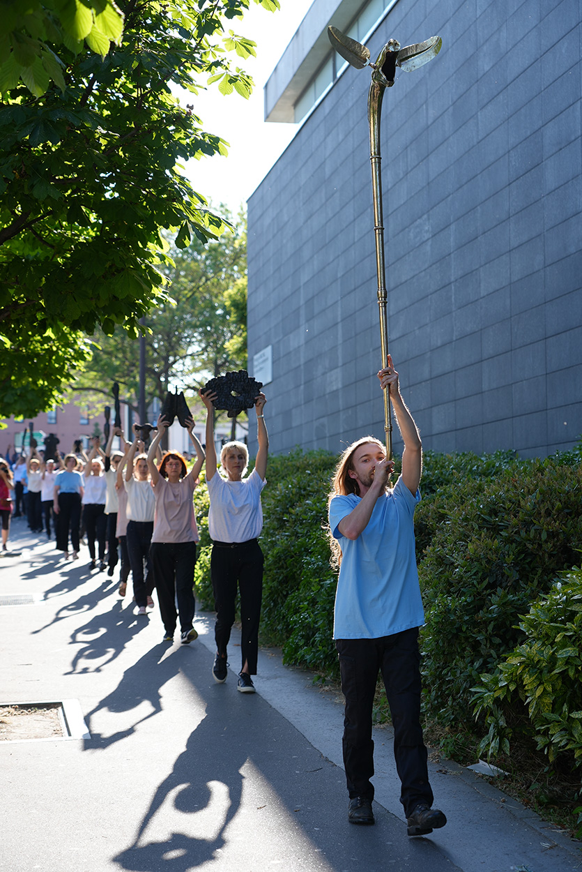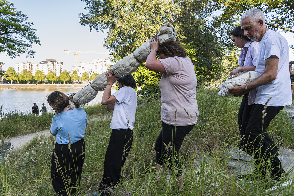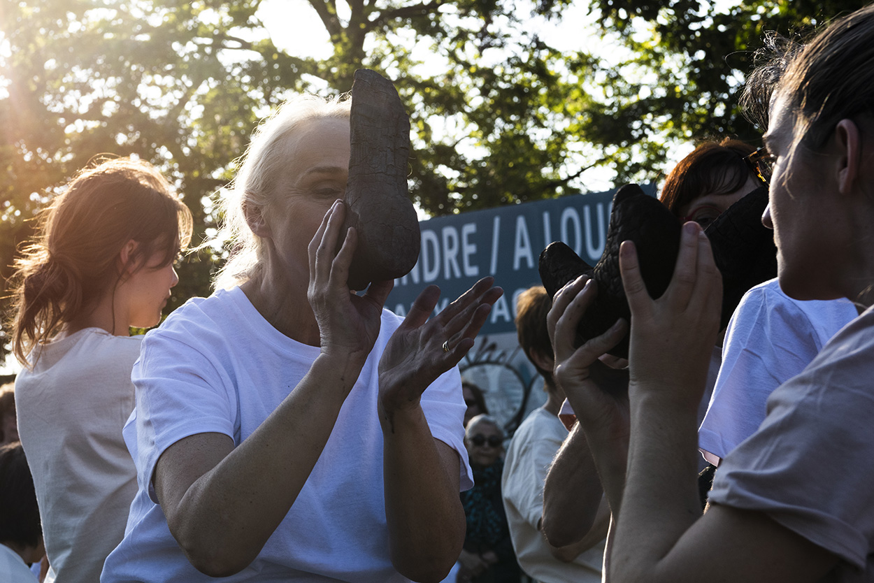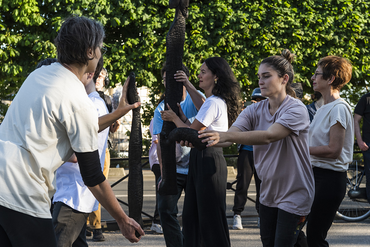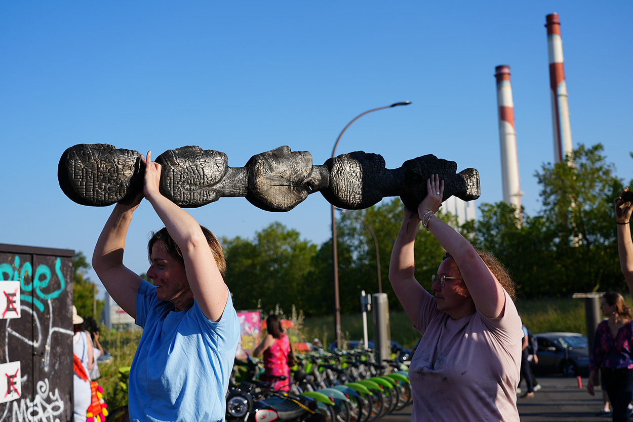 Pour Nuit Blanche 2023, les sculptures restantes ont été exposées au MAC VAL puis transportées du musée jusqu’à la Seine au cours d’une procession chorégraphiée et au son d’un ancien instrument celte, le carnyx. Emmaillotées dans les linceuls contenant du charbon actif, les sculptures ont été immergées dans la Seine pendant plusieurs semaines, contribuant symboliquement, mais aussi concrètement, à la purification du fleuve.