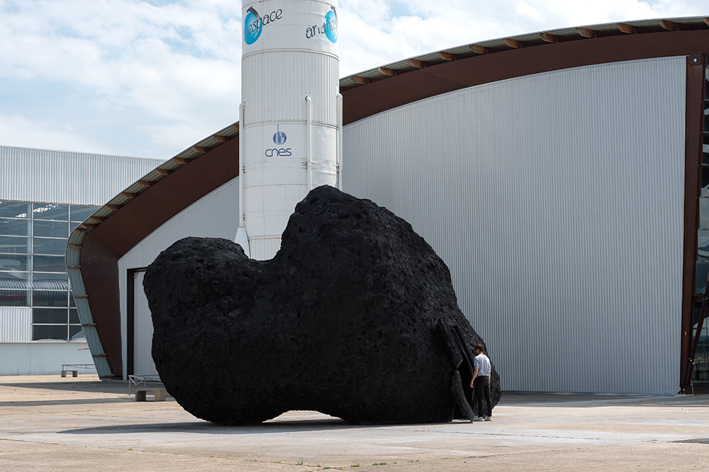 La sculpture-architecture construite sur le tarmac du Musée de l’Air et de l’Espace au Bourget s’inspire de la forme spécifique de la comète « Tchouri ». Lorsque les visiteurs y pénètrent, ils découvrent une grotte dont les parois sont parsemées de formes en verre, réalisées avec une technique utilisée pour la verrerie scientifique de laboratoire.